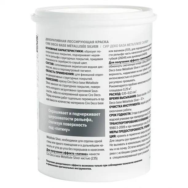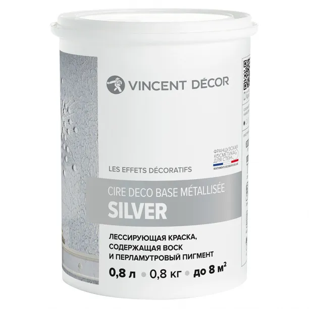 Декоративное покрытие VINCENT DECOR Cire deco base Métallisée Silver Придаёт поверхности серебристо-серый цвет 0,8кг - строительные материалы - купить в интернет-магазине Орегон с доставкой в регионы Крыма.