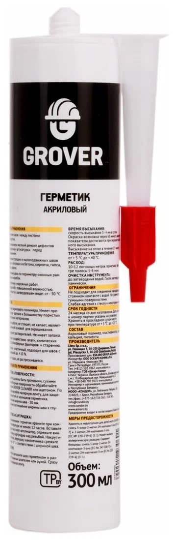 Герметик акриловый Grover А100 белый 0,3л - строительные материалы - купить в интернет-магазине Орегон с доставкой в регионы Крыма.