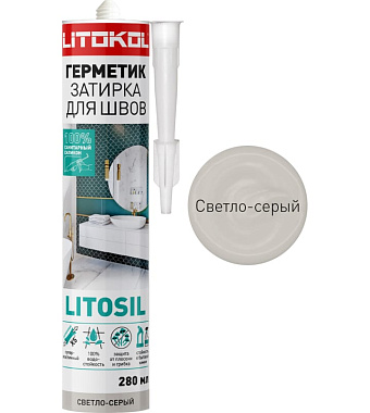 LITOSIL СВЕТЛО-СЕРЫЙ Высокоэластичный сан. силиконовый герметик-затирка для вл. пом.280мл(0,34кг)