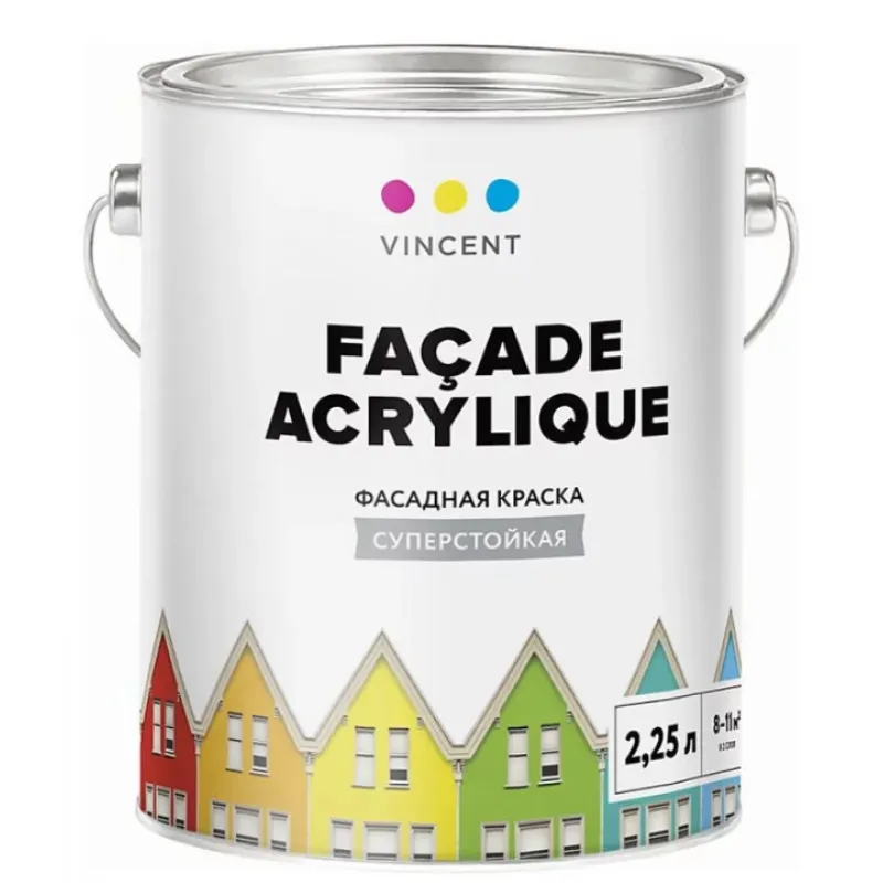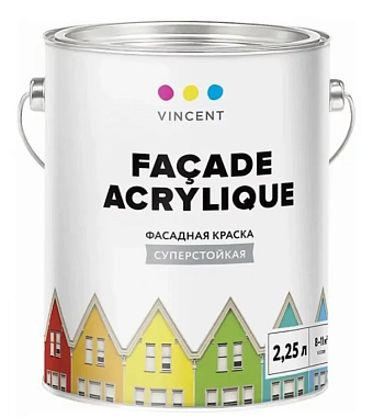 Краска для минеральных поверхностей акриловая/фасадная VINCENT DECOR Facade Acrylique F-2 Белый основа A 2,25л - строительные материалы - купить в интернет-магазине Орегон с доставкой в регионы Крыма.