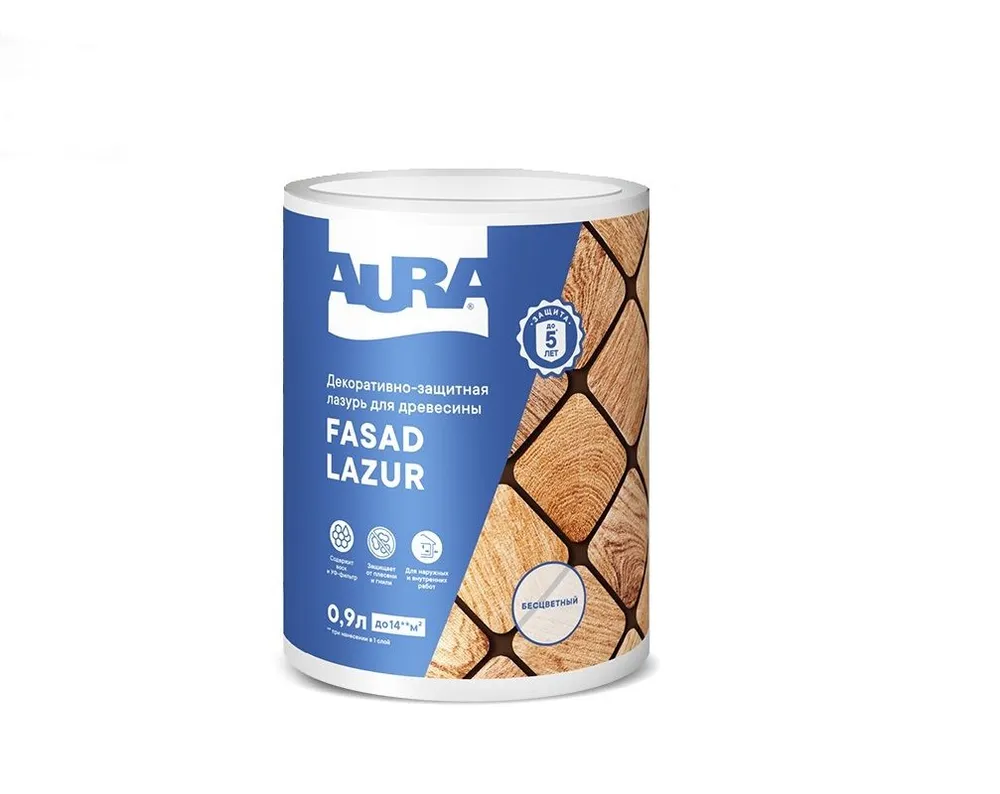 Декоративно-защитная лазурь для древесины "Aura Fasad Lazur" БЕСЦВЕТНАЯ 0,9л