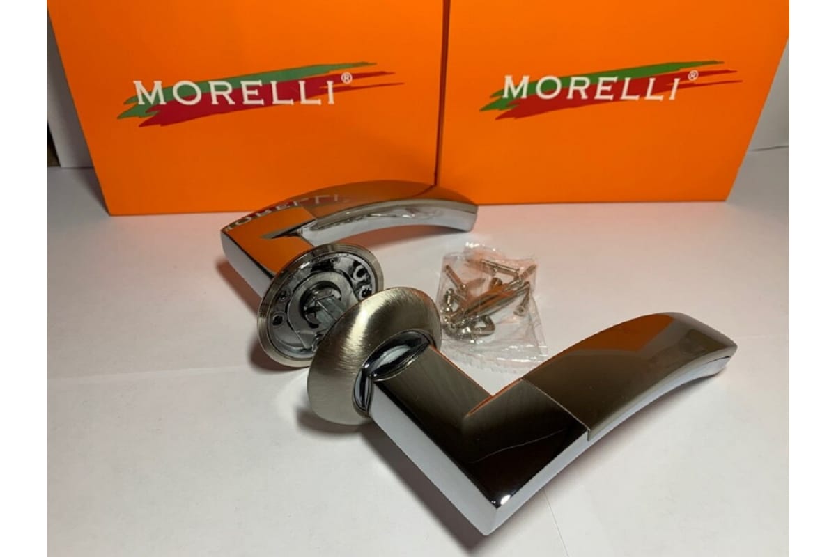Дверная ручка нажимная MORELLI ДРЕВО ЖИЗНИ MH-12 SN/CP белый никель/хром - купить в интернет-магазине Орегон с доставкой в регионы Крыма.