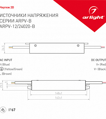 Блок питания для светодиодной ленты Arlight 020847 20Вт 1,67А 12В