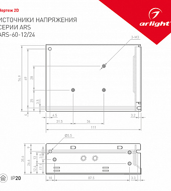 Блок питания для светодиодной ленты Arlight 026153 60Вт 2,5А 24В - купить в интернет-магазине Орегон с доставкой в регионы Крыма.