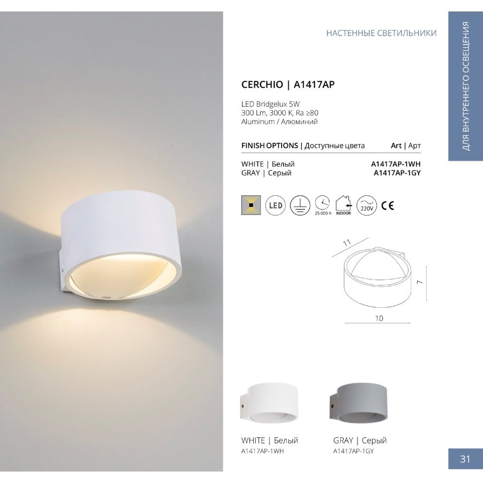 Бра Arte Lamp CERCHIO A1417AP-1GY 5Вт LED - купить в интернет-магазине Орегон с доставкой в регионы Крыма.