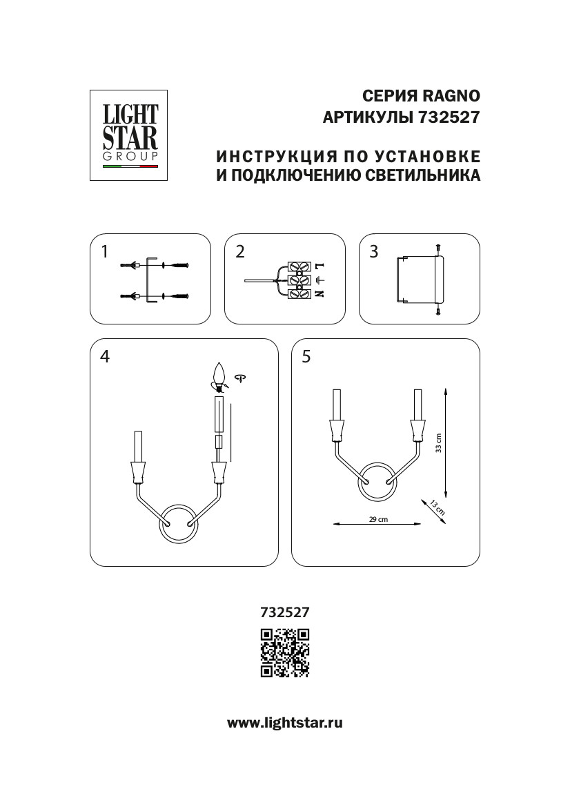 Бра Lightstar Ragno 732527 40Вт E14 - купить в интернет-магазине Орегон с доставкой в регионы Крыма.