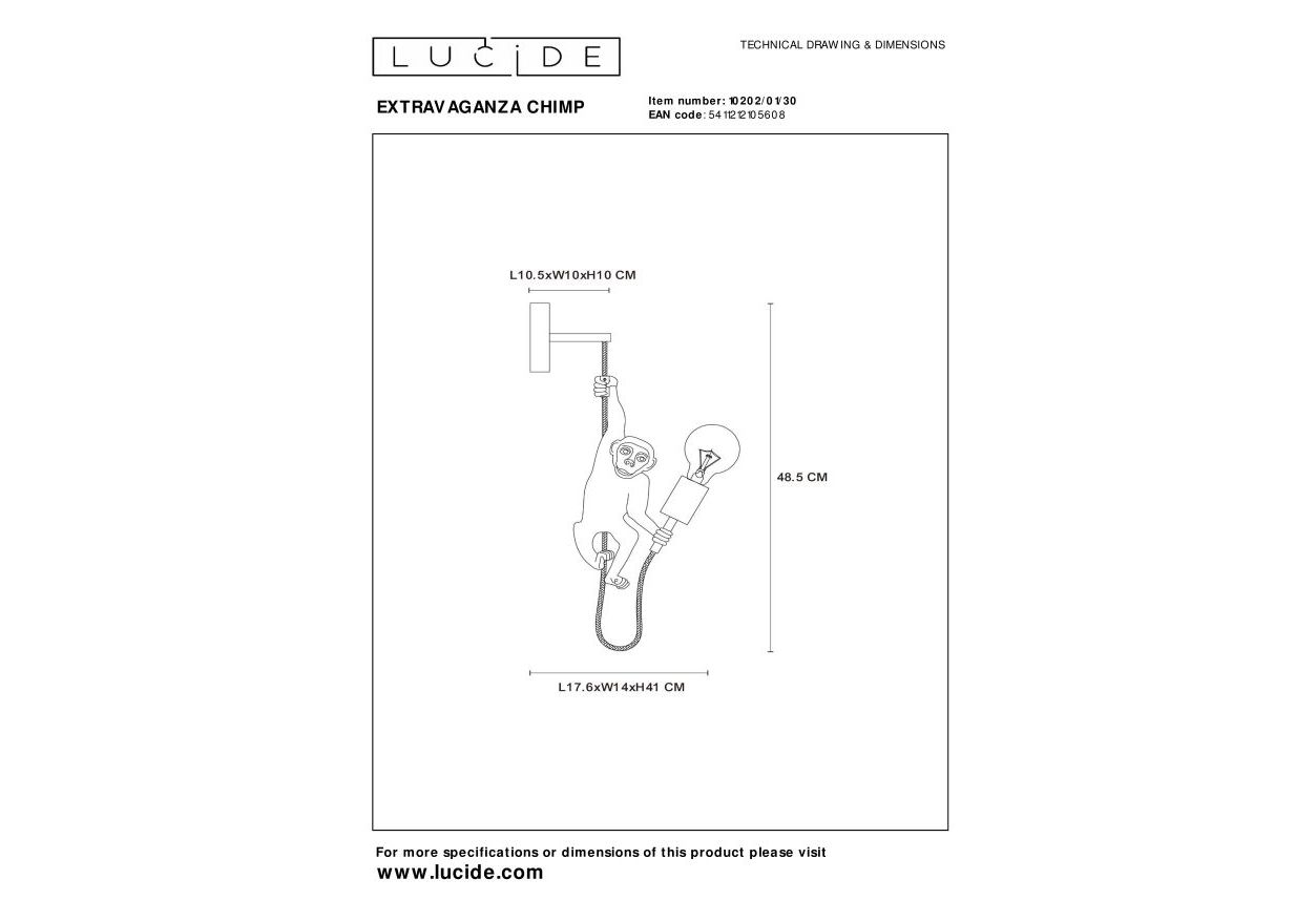 Бра Lucide EXTRAVAGANZA CHIMP - стильная модель для подсветки, зонирования или создания общего освещения в комбинации с потолочными светильниками или люстрой. Мягкий и рассеянный свет сподчёркивает детали интерьера, содаёт уютную атмосферу и спосоствует приятному отдыху. В бра устанавливаются лампочки E27 мощностью 40Вт. Страна производителя: Бельгия. Вы можете купить Бра Lucide EXTRAVAGANZA CHIMP 10202/01/30 40Вт E27 в интернет-магазине "ОРЕГОН" с бесплатной доставкой по всему Крыму или забрать товар самостоятельно в любом из наших магазинов в Ялте, Севастополе и Симферополе.
