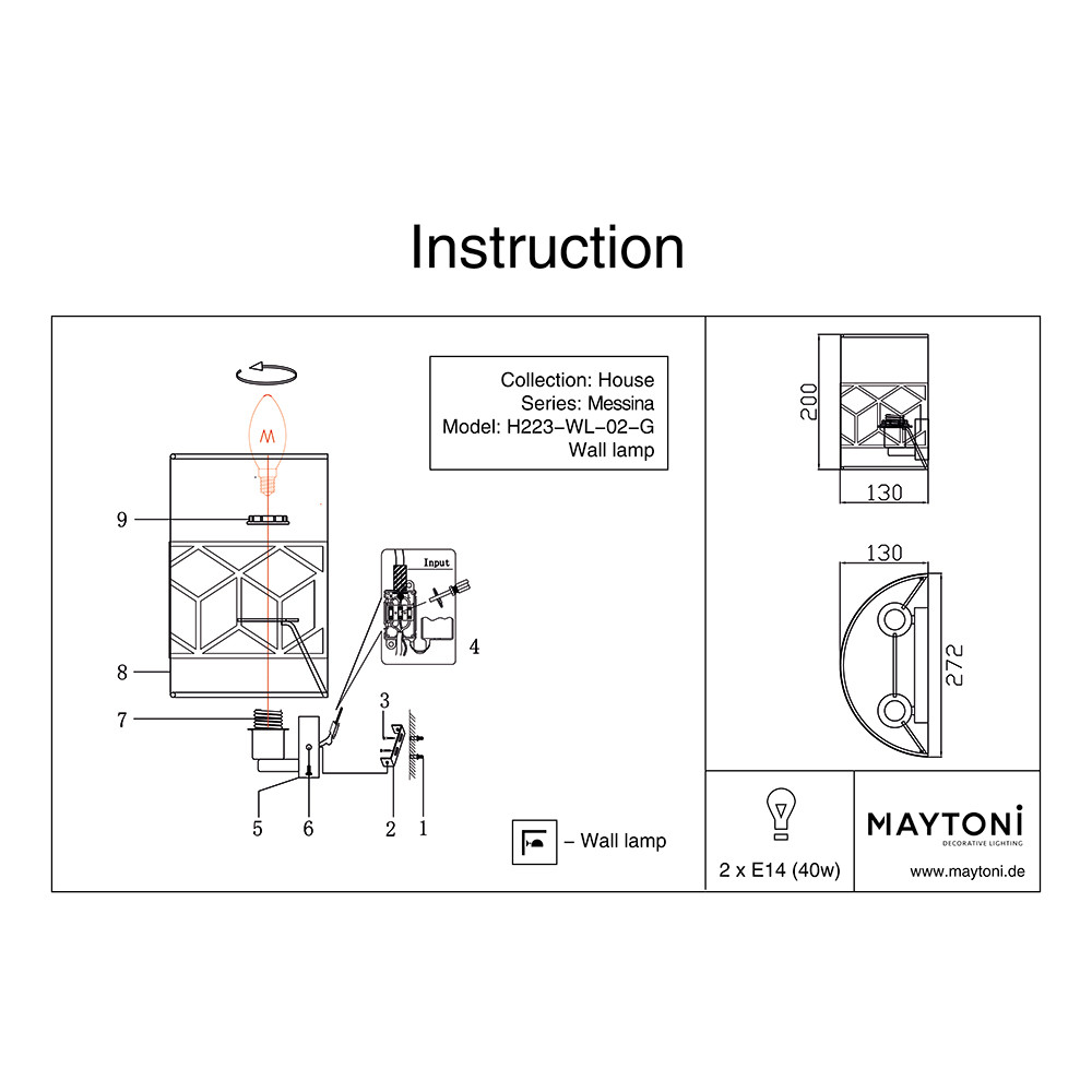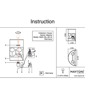 Бра Maytoni Messina H223-WL-02-G 80Вт E14 - купить в интернет-магазине Орегон с доставкой в регионы Крыма.