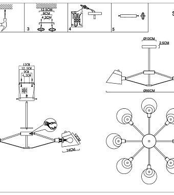 Люстра Evoluce VARIO SLE155802-08 40Вт 8 лампочек E14 - купить в интернет-магазине Орегон с доставкой в регионы Крыма.