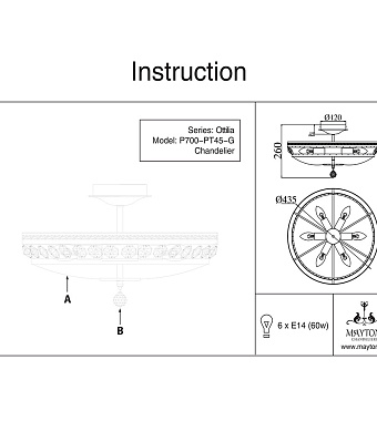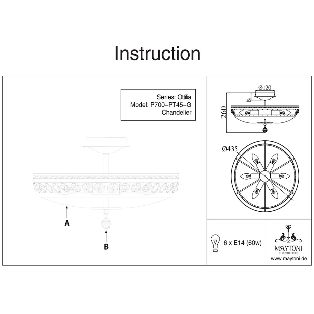 Люстра хрустальная Maytoni Ottilia DIA700-CL-06-G 60Вт 6 лампочек E14 - купить в интернет-магазине Орегон с доставкой в регионы Крыма.