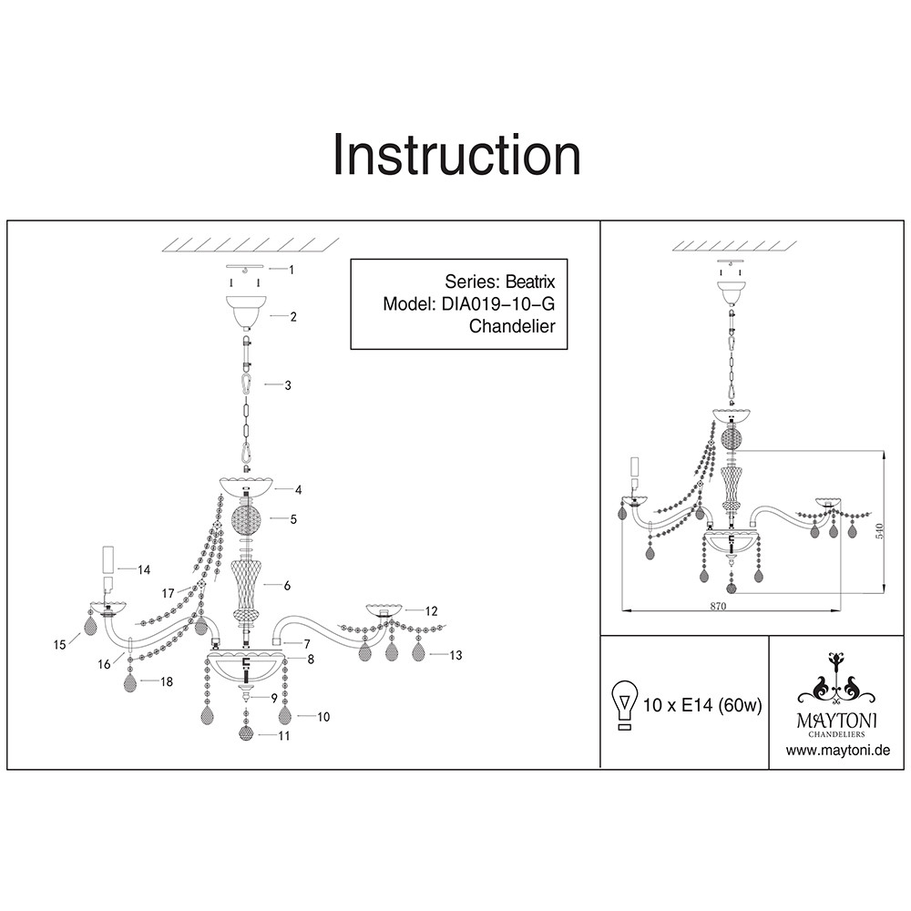 Люстра Maytoni Beatrix DIA019-10-G 60Вт 10 лампочек E14