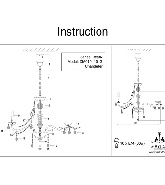 Люстра Maytoni Beatrix DIA019-10-G 60Вт 10 лампочек E14 - купить в интернет-магазине Орегон с доставкой в регионы Крыма.