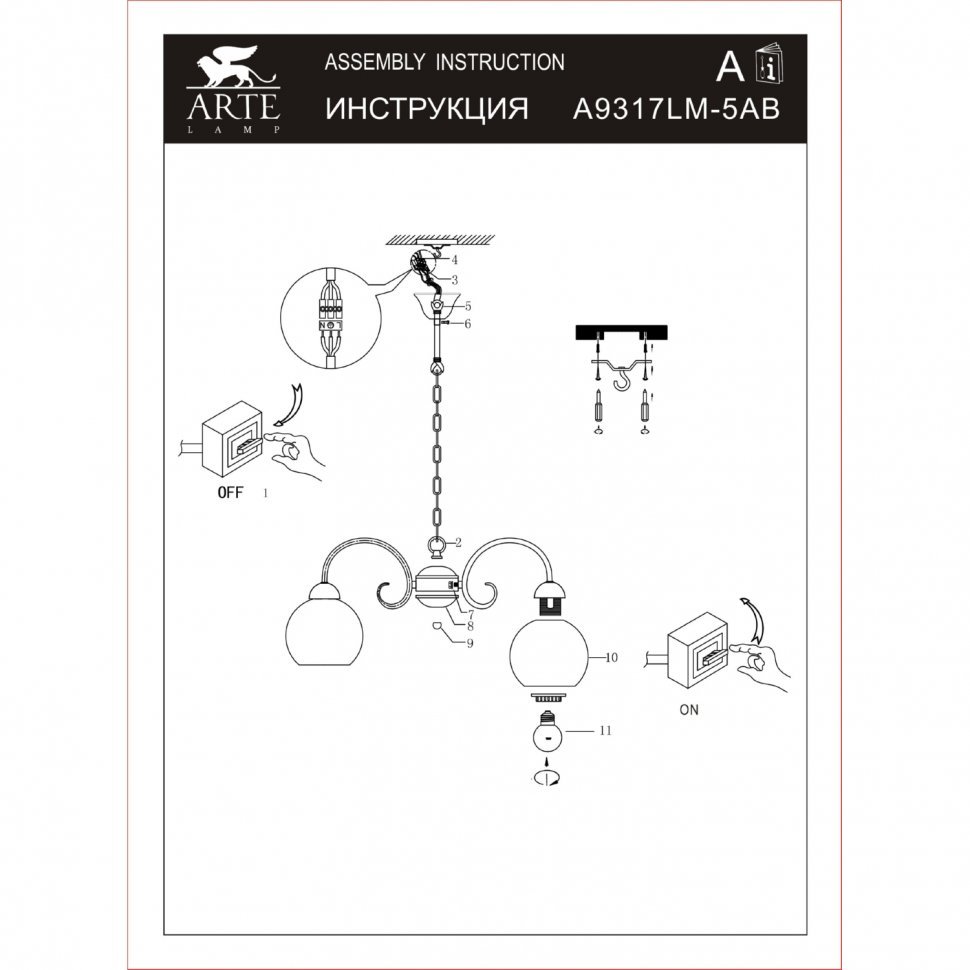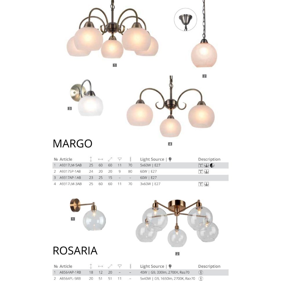 Люстра подвесная Arte Lamp MARGO A9317LM-5AB 60Вт 5 лампочек E27 - купить в интернет-магазине Орегон с доставкой в регионы Крыма.