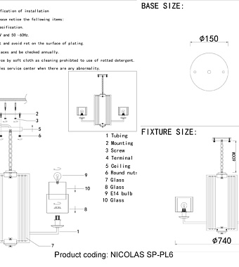 Люстра подвесная CRYSTAL LUX NICOLAS NICOLAS SP-PL6 GOLD/WHITE 360Вт 6 лампочек E14