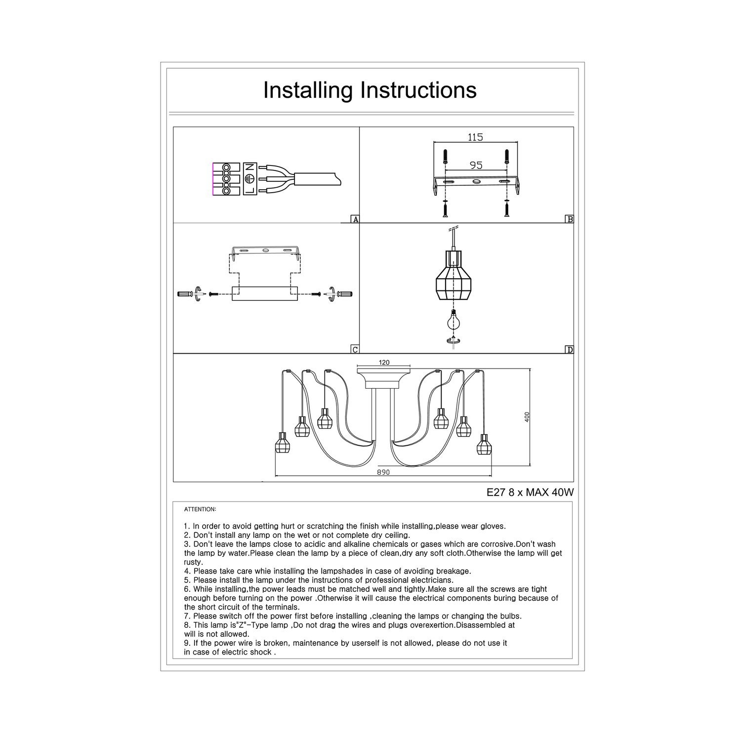 Люстра подвесная Evoluce RETE SL192.303.08 60Вт 8 лампочек E27