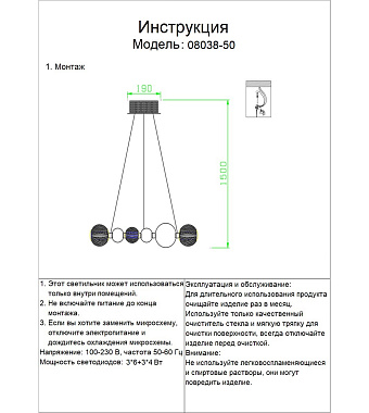 Люстра подвесная KINK Light Амита 08038-50,02 30Вт 6 лампочек LED - купить в интернет-магазине Орегон с доставкой в регионы Крыма.