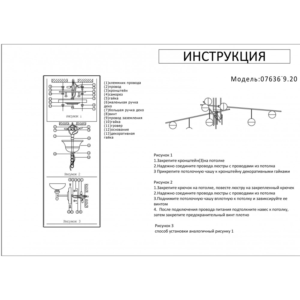 Люстра подвесная KINK Light Навия 07636-9,20 45Вт 9 лампочек G9 - купить в интернет-магазине Орегон с доставкой в регионы Крыма.