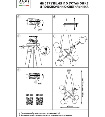 Люстра подвесная Lightstar CROCO 815390 360Вт 9 лампочек E14 - купить в интернет-магазине Орегон с доставкой в регионы Крыма.