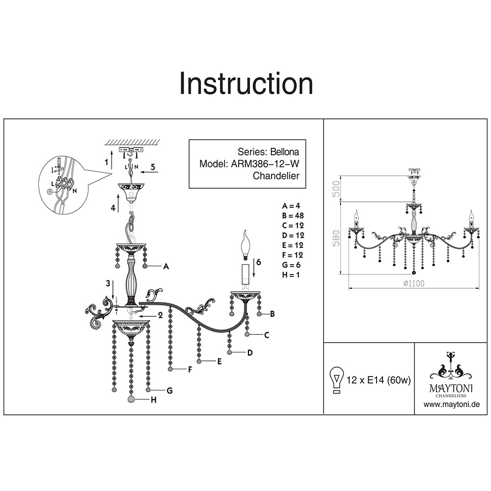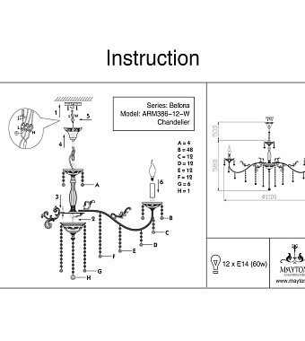 Люстра подвесная Maytoni Bellona ARM386-12-W 60Вт 12 лампочек E14 - купить в интернет-магазине Орегон с доставкой в регионы Крыма.