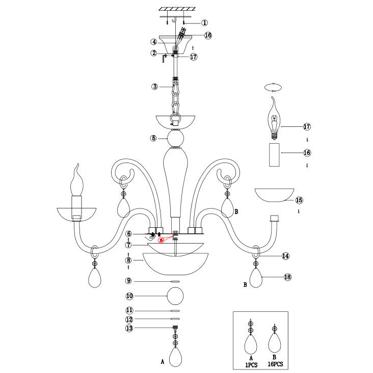 Люстра подвесная Maytoni Cecilia DIA011PL-08W 40Вт 8 лампочек E14 - купить в интернет-магазине Орегон с доставкой в регионы Крыма.