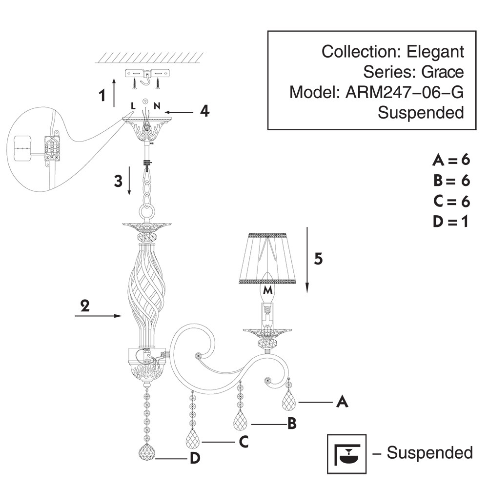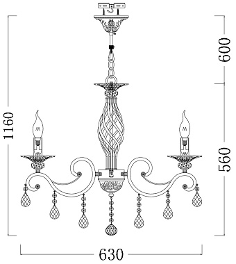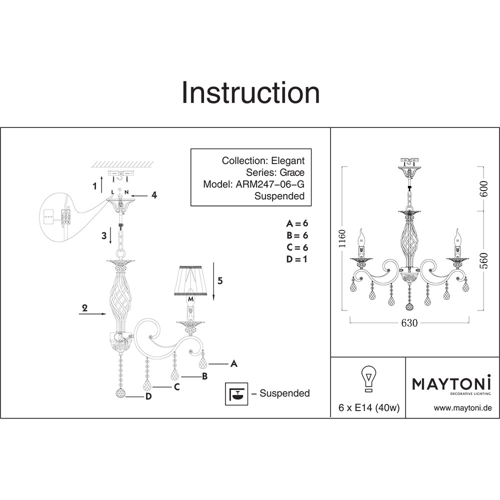 Люстра подвесная Maytoni Grace ARM247-06-G 240Вт 6 лампочек E14 - купить в интернет-магазине Орегон с доставкой в регионы Крыма.