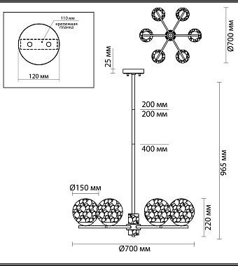Люстра подвесная Odeon GREENI 5026/6 240Вт 6 лампочек E14 - купить в интернет-магазине Орегон с доставкой в регионы Крыма.
