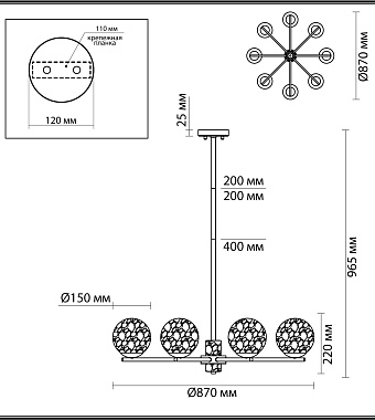 Люстра подвесная Odeon GREENI 5026/8 320Вт 8 лампочек E14 - купить в интернет-магазине Орегон с доставкой в регионы Крыма.