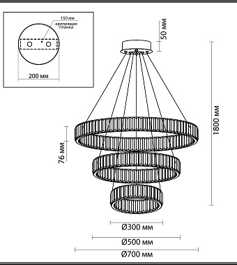 Люстра подвесная Odeon Vekia 5015/88L 88Вт 1 лампочек LED - купить в интернет-магазине Орегон с доставкой в регионы Крыма.