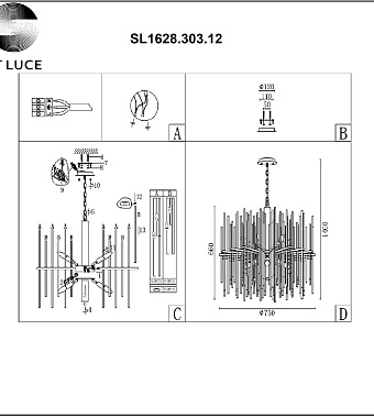 Люстра подвесная ST Luce TERAMO SL1628.303.12 480Вт 12 лампочек E14 - купить в интернет-магазине Орегон с доставкой в регионы Крыма.