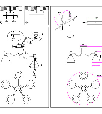 Люстра потолочная Ambrella TRADITIONAL Modern TR303307 840Вт 5 лампочек E27 - купить в интернет-магазине Орегон с доставкой в регионы Крыма.