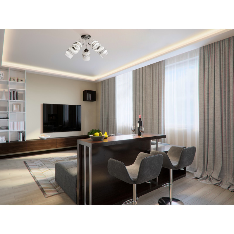 Потолочная люстра De Markt Олимпия станет ярким акцентом интерьера, источником света и уюта в доме. 5 лампочек E27 общей мощностью 300Вт обеспечат равномерное и комфортное освещение. Люстра вплотную примыкает к потолку, что позволяет максимально эффективно использовать имеющееся пространство. С потолочной люстрой Олимпия в оттенке "хром" интерьер станет воплощением изысканного вкуса и безупречного стиля. Страна производителя:. Вы можете купить Люстра потолочная De Markt Олимпия 106010705 300Вт 5 лампочек E27 в интернет-магазине "ОРЕГОН" с бесплатной доставкой по всему Крыму или забрать товар самостоятельно в любом из наших магазинов в Ялте, Севастополе и Симферополе.