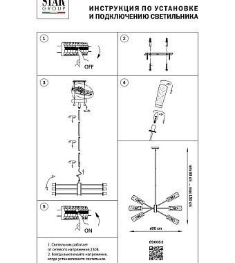 Люстра потолочная Lightstar Crotone 690063 40Вт 6 лампочек E14 - купить в интернет-магазине Орегон с доставкой в регионы Крыма.