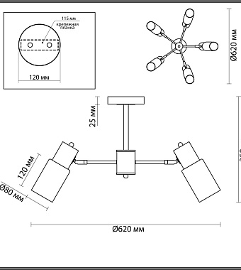 Люстра потолочная Lumion RONNIE 5644/5C 200Вт 5 лампочек E14 - купить в интернет-магазине Орегон с доставкой в регионы Крыма.