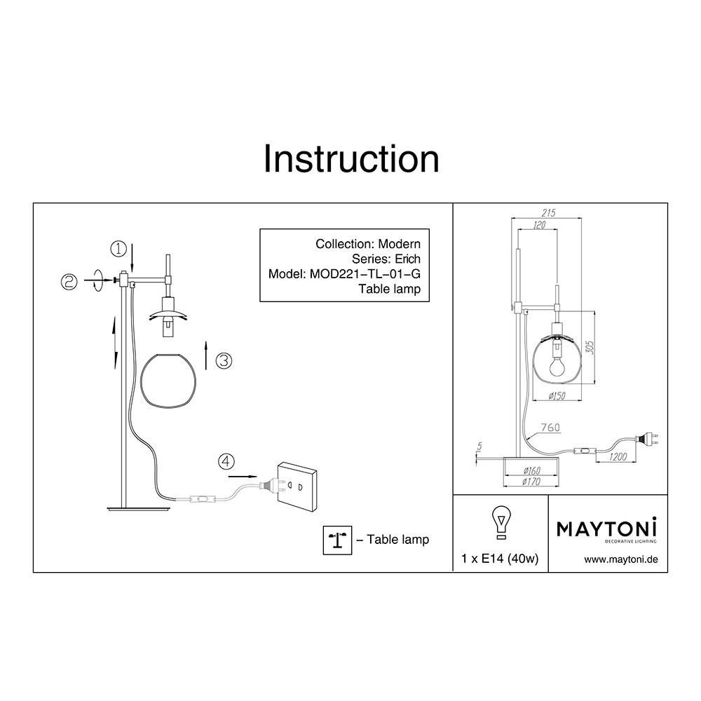 Настольная лампа Maytoni Erich MOD221-TL-01-G 40Вт E14 - купить в интернет-магазине Орегон с доставкой в регионы Крыма.