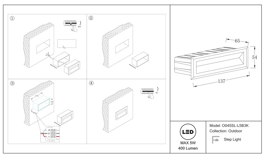 Подсветка для лестниц Outdoor Outdoor O045SL-L5B3K Черный - купить в интернет-магазине Орегон с доставкой в регионы Крыма.