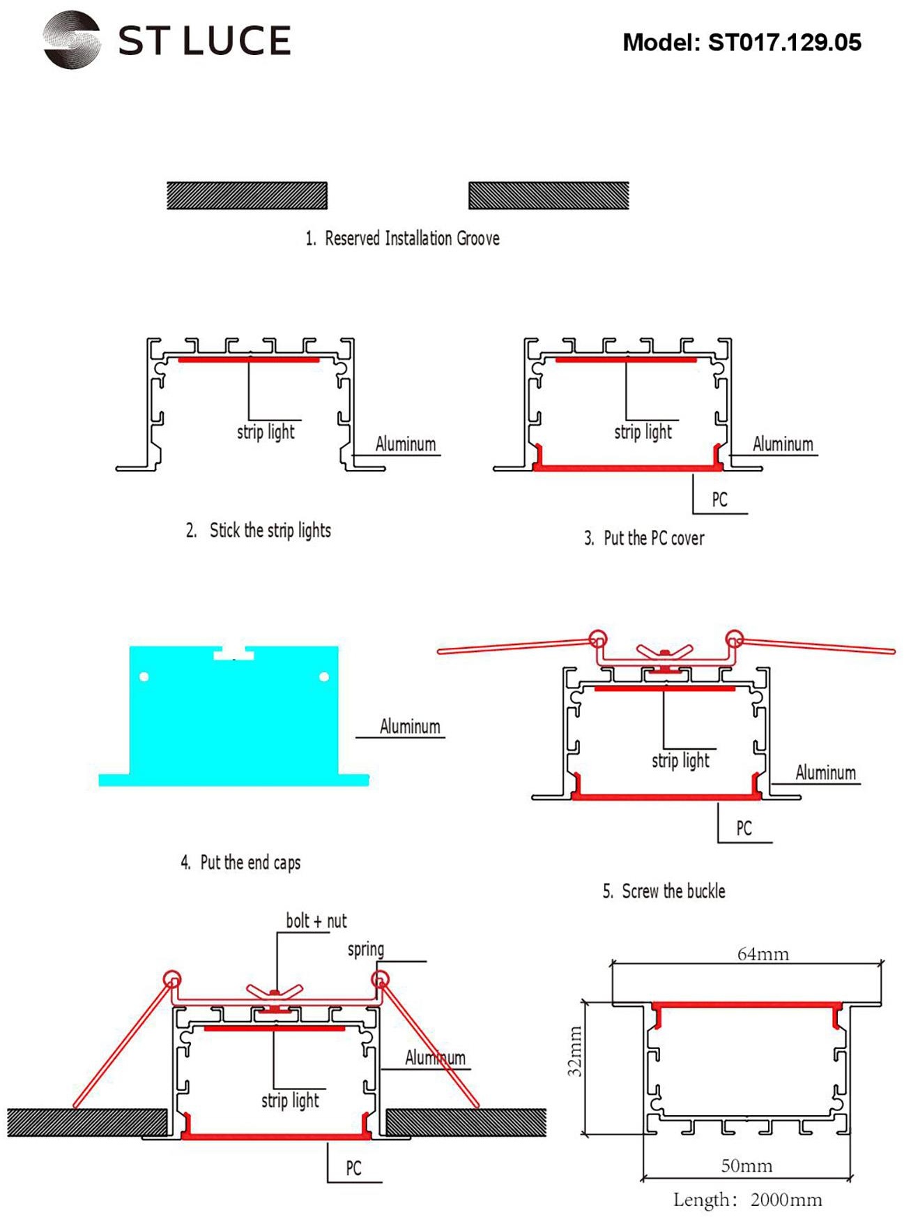 Профиль для светодиодной ленты ST Luce ST017.129.05 2000мм алюминий анодированный - купить в интернет-магазине Орегон с доставкой в регионы Крыма.