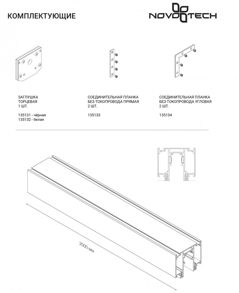 Шинопровод однофазный Novotech 135130 2000мм белый для трековых светильников - купить в интернет-магазине Орегон с доставкой в регионы Крыма.