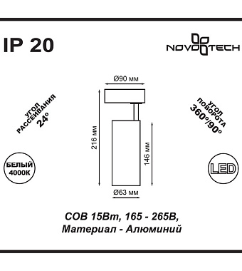 Спот Novotech OVER 357549 15Вт 1 лампа LED - купить в интернет-магазине Орегон с доставкой в регионы Крыма.