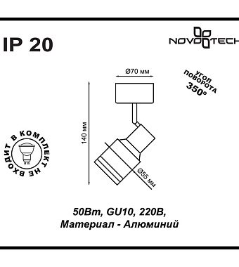 Спот Novotech OVER 370396 50Вт 1 лампа GU10