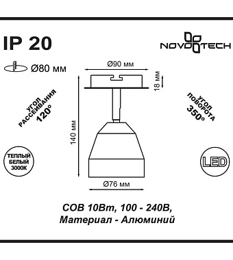 Спот встраиваемый Novotech SPOT 357453 10Вт LED - купить в интернет-магазине Орегон с доставкой в регионы Крыма.
