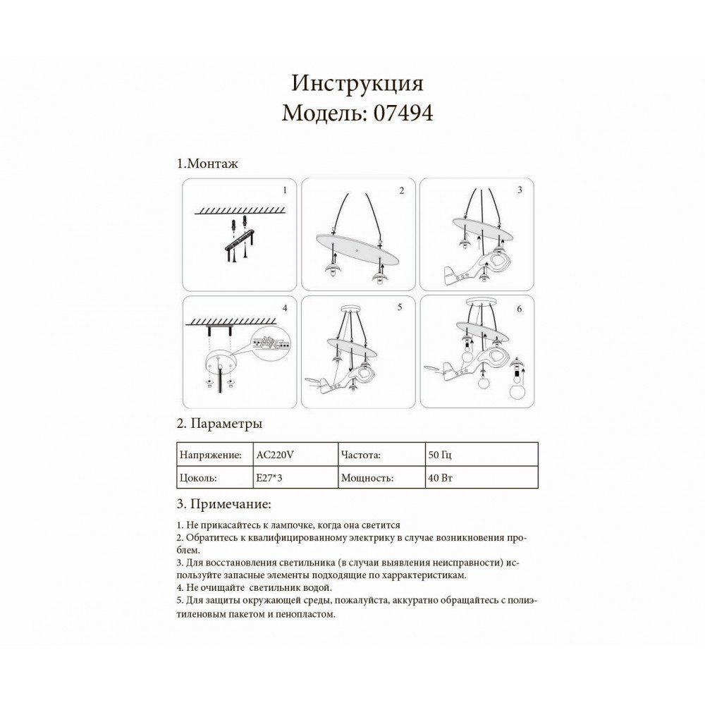 Светильник детский KINK Light Аэроплан 7494 120Вт E27 - купить в интернет-магазине Орегон с доставкой в регионы Крыма.