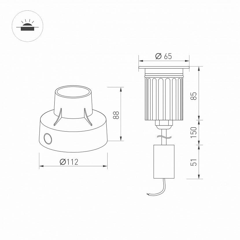 Диаметр врезного отверстия, мм 112