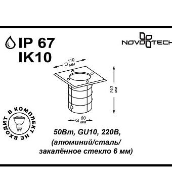 Светильник грунтовый Novotech STREET 369952 9Вт IP67 GU10 - купить в интернет-магазине Орегон с доставкой в регионы Крыма.