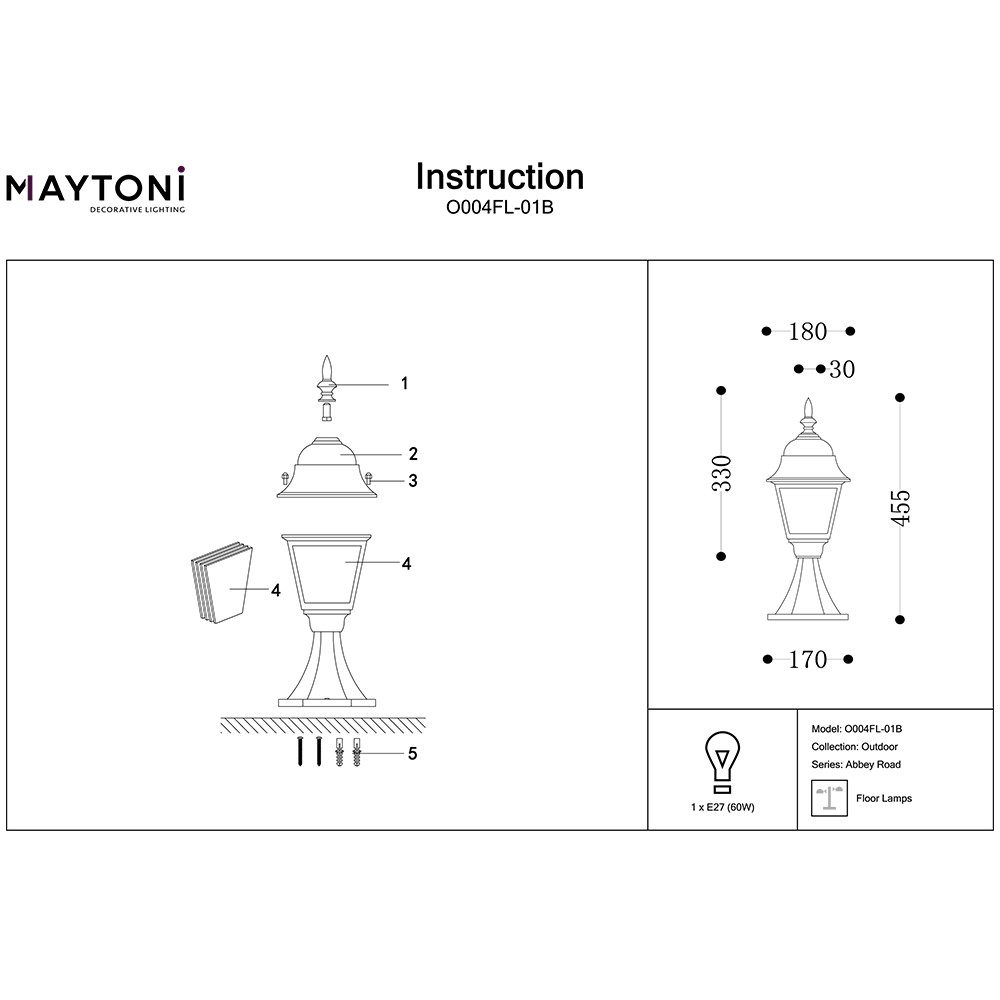 Светильник ландшафтный Maytoni Abbey Road O004FL-01B 60Вт IP44 E27 чёрный - купить в интернет-магазине Орегон с доставкой в регионы Крыма.