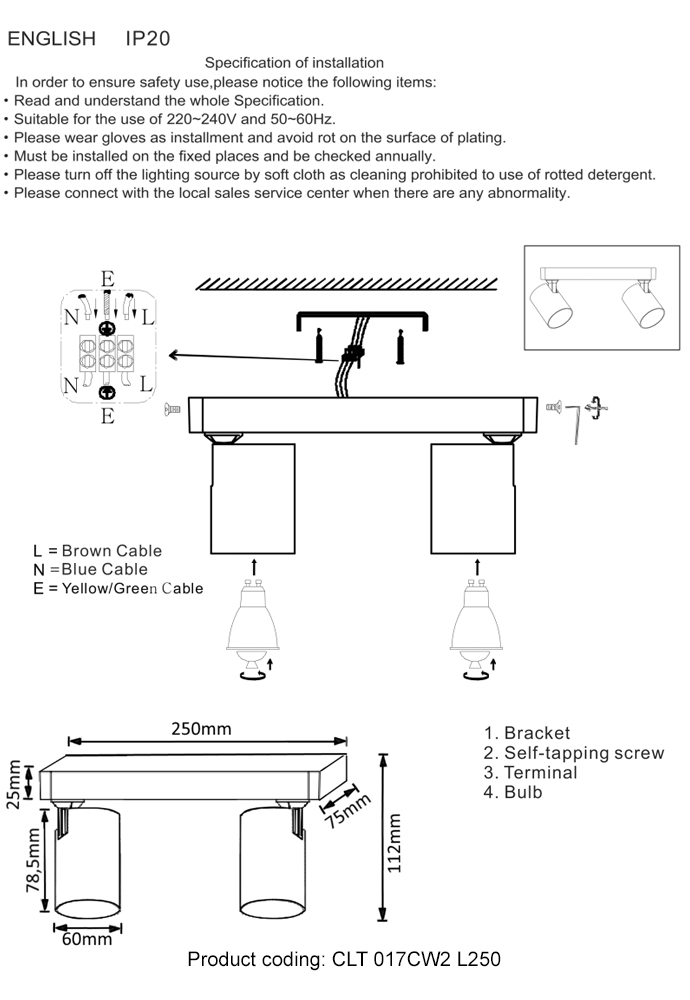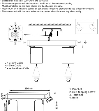 Светильник настенно-потолочный CRYSTAL LUX CLT 017 CLT 017CW2 L250 BL 100Вт GU10 - купить в интернет-магазине Орегон с доставкой в регионы Крыма.