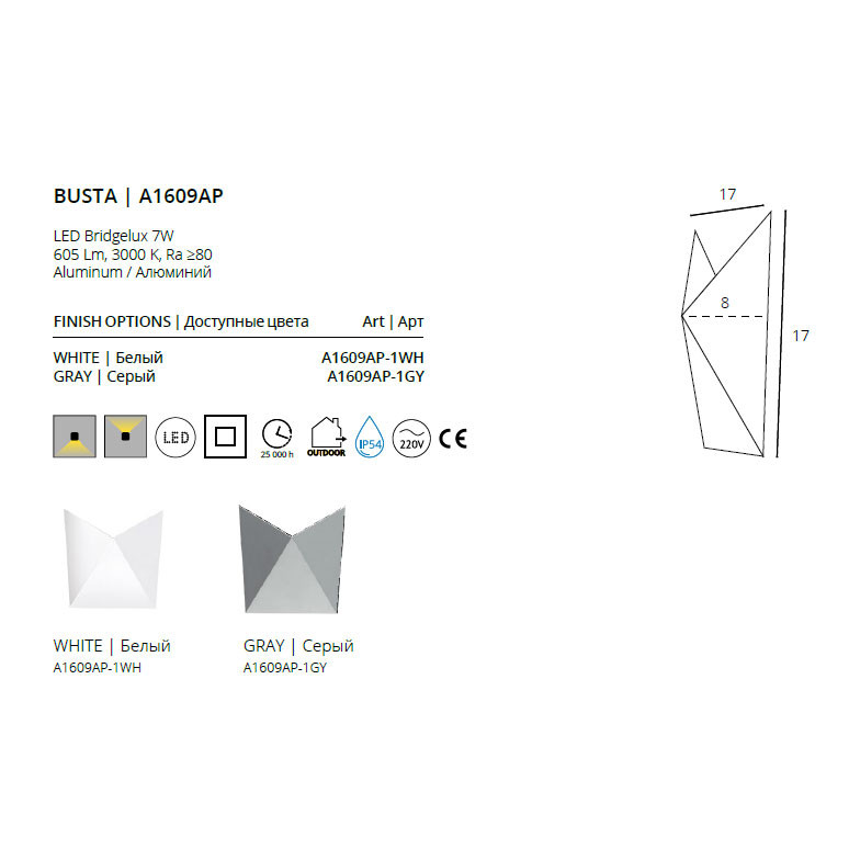 Светильник настенный Arte Lamp BUSTA A1609AP-1GY 7Вт LED - купить в интернет-магазине Орегон с доставкой в регионы Крыма.