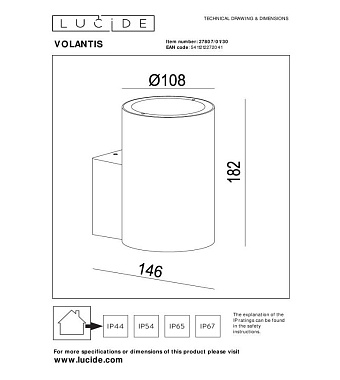 Светильник настенный Lucide VOLANTIS 27807/01/30 40Вт E27