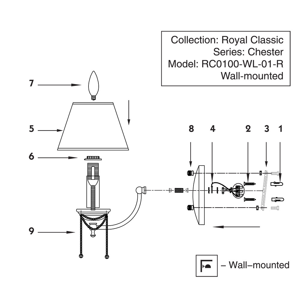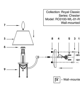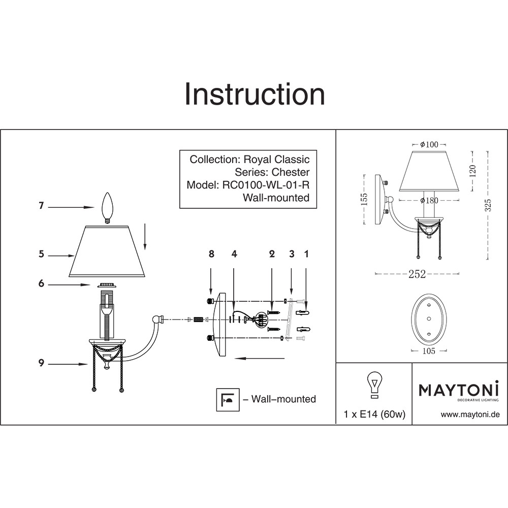 Светильник настенный Maytoni Chester RC0100-WL-01-R 60Вт E14 - купить в интернет-магазине Орегон с доставкой в регионы Крыма.