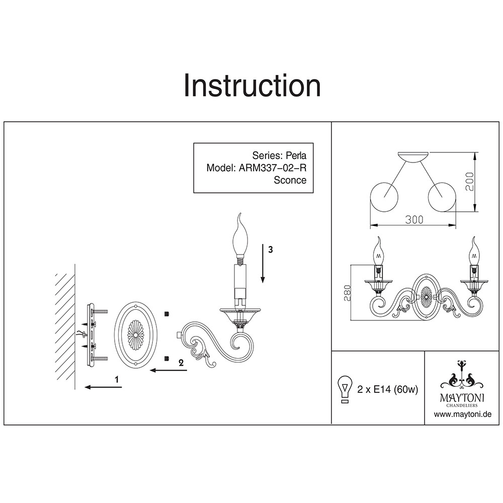 Светильник настенный Maytoni Perla ARM337-02-R 60Вт E14 - купить в интернет-магазине Орегон с доставкой в регионы Крыма.