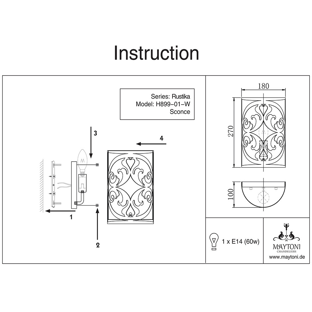 Светильник настенный Maytoni Rustika H899-01-W 60Вт E14 - купить в интернет-магазине Орегон с доставкой в регионы Крыма.